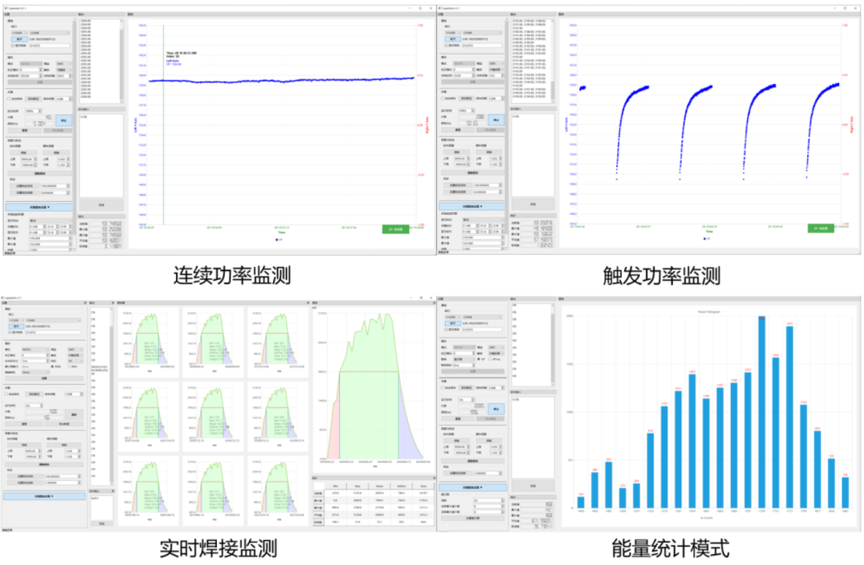 軟件具備實時功率監測,能量檢測、數據存儲顯示、產品配置等功能,可提供SDK進行二次開發,也可以通過RS232進行通信。